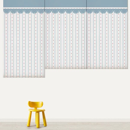 O Papel de parede Doce Nostalgia com barrado é feito com matéria-prima importada e impresso no Brasil. O papel de parede non-woven combina fibras naturais e sintéticas, sendo mais moderno que o tradicional. Ele permite que a parede “respire”, evitando mofo e bolor escondidos. Além disso, é fácil de limpar: basta um pano úmido!