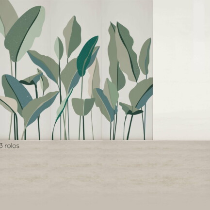 O Painel de parede Bananeira é feito com matéria-prima importada e impresso no Brasil. O papel de parede non-woven combina fibras naturais e sintéticas, sendo mais moderno que o tradicional. Ele permite que a parede “respire”, evitando mofo e bolor escondidos. Além disso, é fácil de limpar: basta um pano úmido!