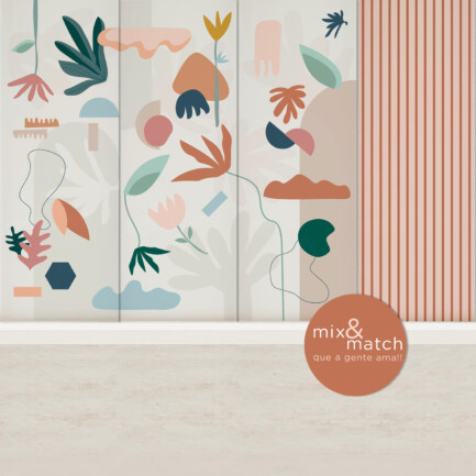 O Painel de parede Formas Florais é feito com matéria-prima importada e impresso no Brasil. O papel de parede non-woven combina fibras naturais e sintéticas, sendo mais moderno que o tradicional. Ele permite que a parede “respire”, evitando mofo e bolor escondidos. Além disso, é fácil de limpar: basta um pano úmido!