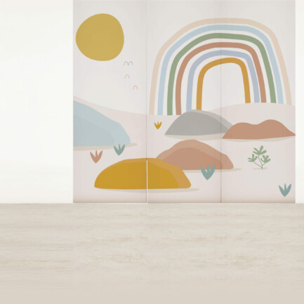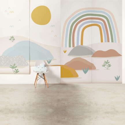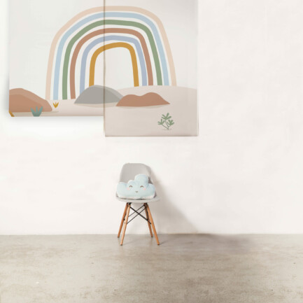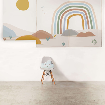 O Painel de parede Maxi Arco-Íris é feito com matéria-prima importada e impresso no Brasil. O papel de parede non-woven combina fibras naturais e sintéticas, sendo mais moderno que o tradicional. Ele permite que a parede “respire”, evitando mofo e bolor escondidos. Além disso, é fácil de limpar: basta um pano úmido!