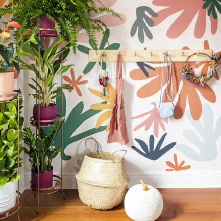 O Painel de parede Maxi Botânica é feito com matéria-prima importada e impresso no Brasil. O papel de parede non-woven combina fibras naturais e sintéticas, sendo mais moderno que o tradicional. Ele permite que a parede “respire”, evitando mofo e bolor escondidos. Além disso, é fácil de limpar: basta um pano úmido!