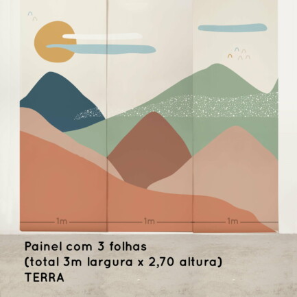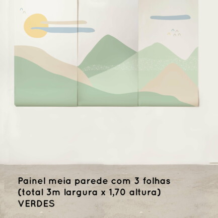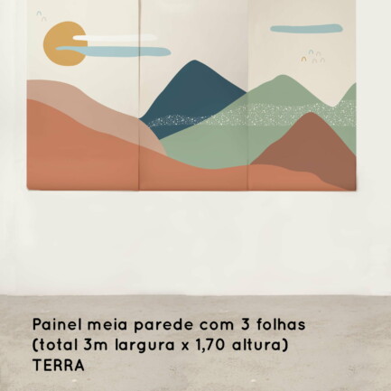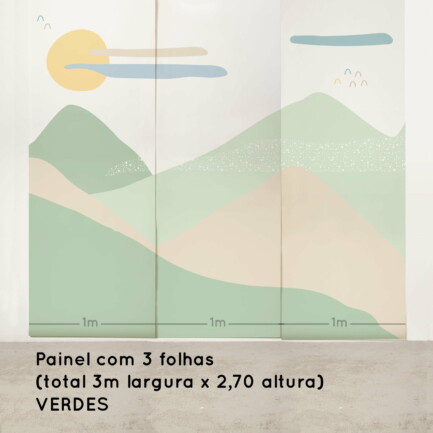 O Painel de parede Montanhas Good Vibes é feito com matéria-prima importada e impresso no Brasil. O papel de parede non-woven combina fibras naturais e sintéticas, sendo mais moderno que o tradicional. Ele permite que a parede “respire”, evitando mofo e bolor escondidos. Além disso, é fácil de limpar: basta um pano úmido!