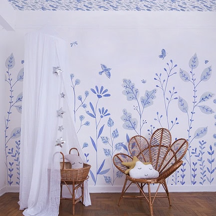 O Painel de parede Porcelana Jardim é feito com matéria-prima importada e impresso no Brasil. O papel de parede non-woven combina fibras naturais e sintéticas, sendo mais moderno que o tradicional. Ele permite que a parede “respire”, evitando mofo e bolor escondidos. Além disso, é fácil de limpar: basta um pano úmido!