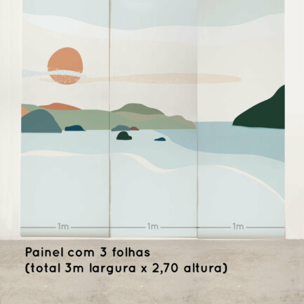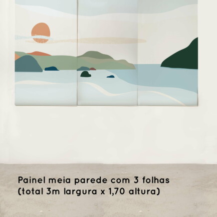 O Painel de parede Praia é feito com matéria-prima importada e impresso no Brasil. O papel de parede non-woven combina fibras naturais e sintéticas, sendo mais moderno que o tradicional. Ele permite que a parede “respire”, evitando mofo e bolor escondidos. Além disso, é fácil de limpar: basta um pano úmido!