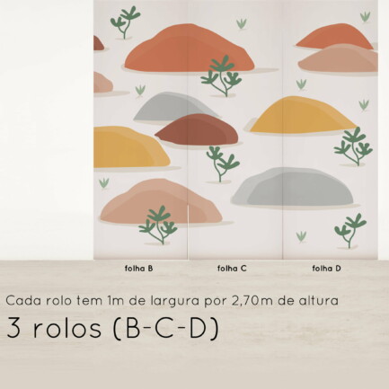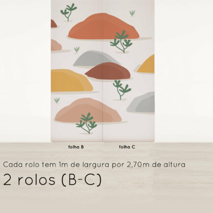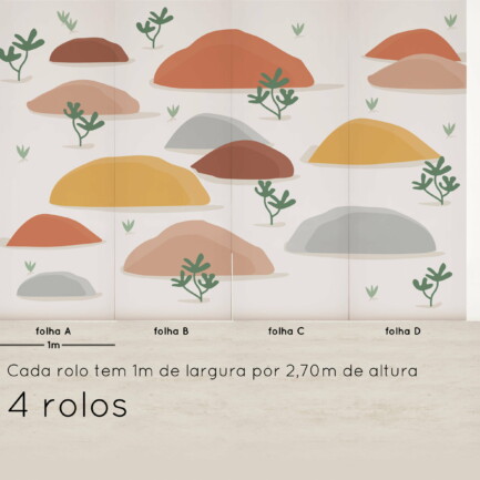 O Painel de parede Refúgio é feito com matéria-prima importada e impresso no Brasil. O papel de parede non-woven combina fibras naturais e sintéticas, sendo mais moderno que o tradicional. Ele permite que a parede “respire”, evitando mofo e bolor escondidos. Além disso, é fácil de limpar: basta um pano úmido!