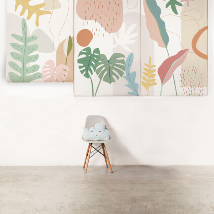 O Painel de parede Tropicalia é feito com matéria-prima importada e impresso no Brasil. O papel de parede non-woven combina fibras naturais e sintéticas, sendo mais moderno que o tradicional. Ele permite que a parede “respire”, evitando mofo e bolor escondidos. Além disso, é fácil de limpar: basta um pano úmido!