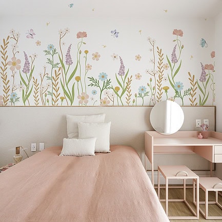 O Painel Sheepy Flores Mágicas é feito com matéria-prima importada e impresso no Brasil. O papel de parede non-woven combina fibras naturais e sintéticas, sendo mais moderno que o tradicional. Ele permite que a parede “respire”, evitando mofo e bolor escondidos. Além disso, é fácil de limpar: basta um pano úmido!