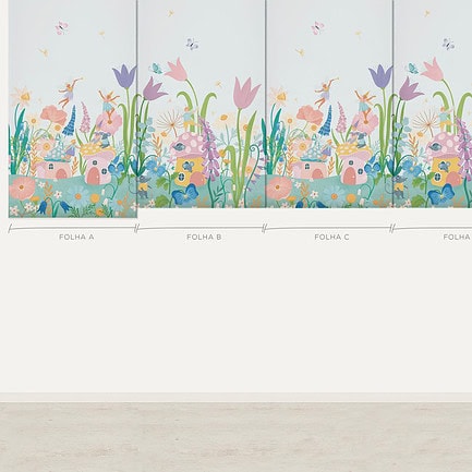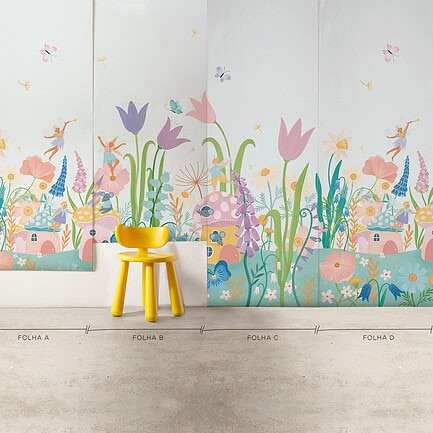 O Painel Sheepy Mundo Mágico é feito com matéria-prima importada e impresso no Brasil. O papel de parede non-woven combina fibras naturais e sintéticas, sendo mais moderno que o tradicional. Ele permite que a parede “respire”, evitando mofo e bolor escondidos. Além disso, é fácil de limpar: basta um pano úmido!