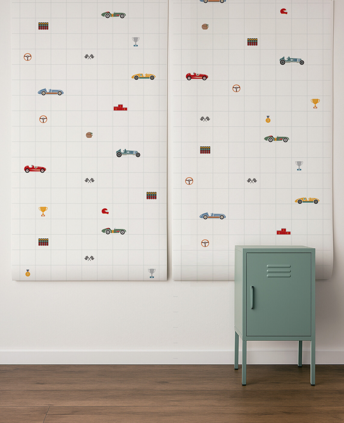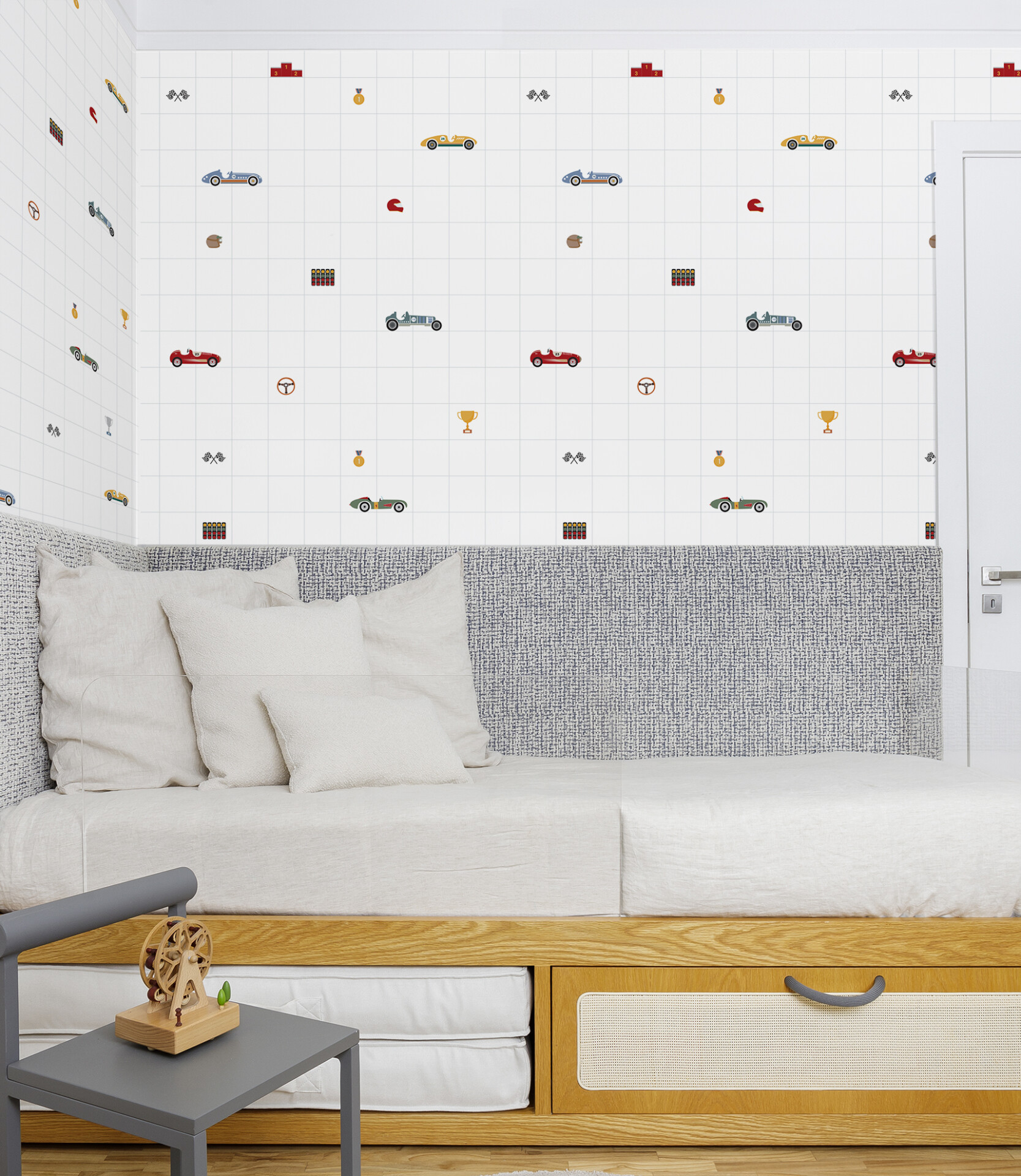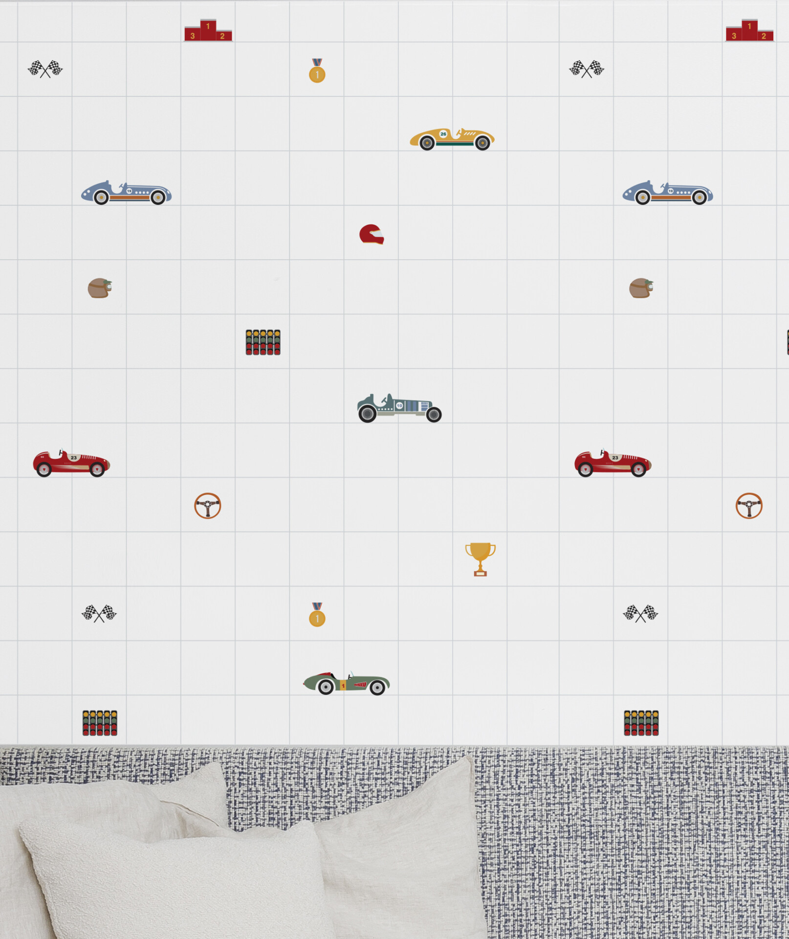 O Papel de parede Fórmula 1 retrô revive a emoção das corridas antigas com muita diversão e adrenalina, deixando qualquer ambiente com espírito de vencedor!
