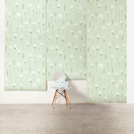 O Papel de parede Jardim Margaridas é feito com matéria-prima importada e impresso no Brasil. O papel de parede non-woven combina fibras naturais e sintéticas, sendo mais moderno que o tradicional. Ele permite que a parede “respire”, evitando mofo e bolor escondidos. Além disso, é fácil de limpar: basta um pano úmido!