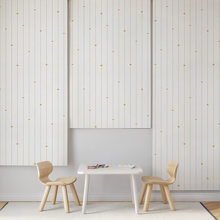 O Papel de parede Listado Asteriscos é feito com matéria-prima importada e impresso no Brasil. O papel de parede non-woven combina fibras naturais e sintéticas, sendo mais moderno que o tradicional. Ele permite que a parede “respire”, evitando mofo e bolor escondidos. Além disso, é fácil de limpar: basta um pano úmido!