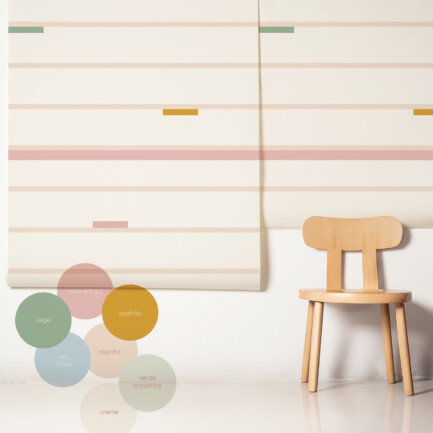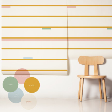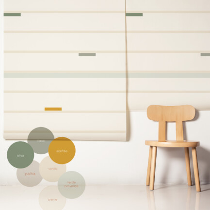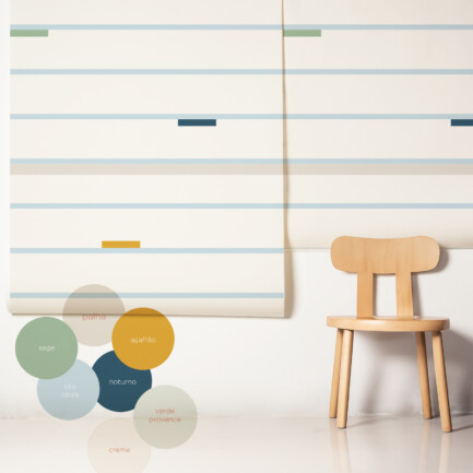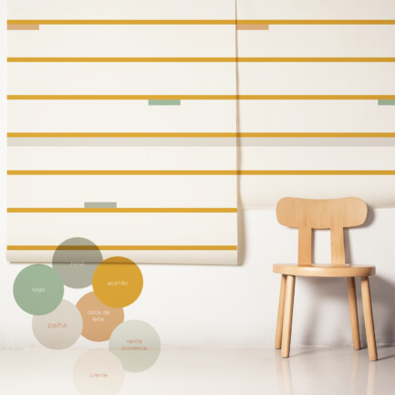 O Papel de parede Listrado Horizontal Barrinhas é feito com matéria-prima importada e impresso no Brasil. O papel de parede non-woven combina fibras naturais e sintéticas, sendo mais moderno que o tradicional. Ele permite que a parede “respire”, evitando mofo e bolor escondidos. Além disso, é fácil de limpar: basta um pano úmido!