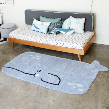 O Tapete de Algodão Baleia é produzido com fibra natural, 100% algodão e tingido com tintas atóxicas, garantindo segurança e qualidade.