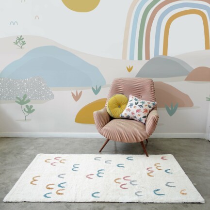 Macio e suave ao toque, o tapete permite que as crianças brinquem com conforto. Além disso, ele adiciona um toque divertido, acolhedor e moderno ao quarto dos seus filhos. E o melhor de tudo? Pode ser lavado na máquina de lavar!