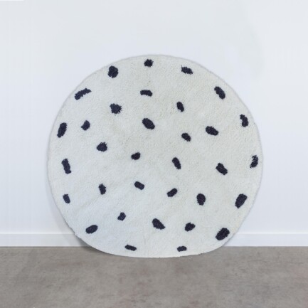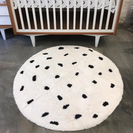 O Tapete de Algodão Pontinhos é produzido com fibra natural, 100% algodão e tingido com tintas atóxicas, garantindo segurança e qualidade.