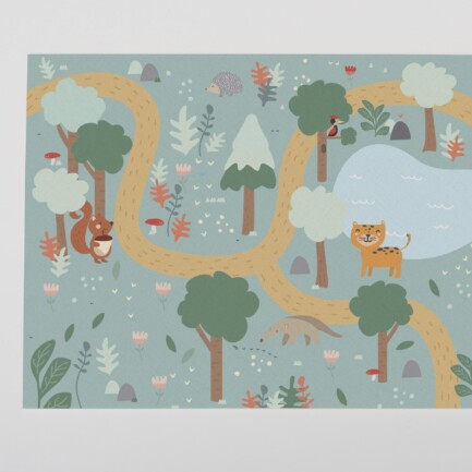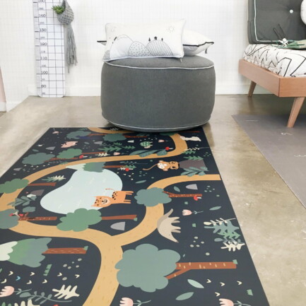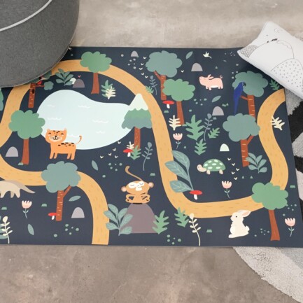 Tapetes playmat de borracha: feitos com poliéster e PVC, são antiderrapantes, fáceis de limpar e podem servir tanto como elemento decorativo quanto como tapete de atividades, dependendo do tema e da estampa. Ótimo para famílias com pets e crianças alérgicas.