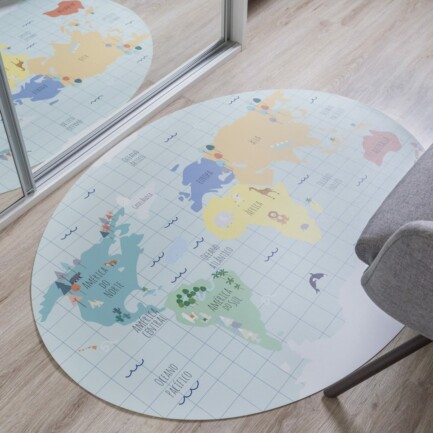 Tapetes playmat de borracha: feitos com poliéster e PVC, são antiderrapantes, fáceis de limpar e podem servir tanto como elemento decorativo quanto como tapete de atividades, dependendo do tema e da estampa. Ótimo para famílias com pets e crianças alérgicas.
