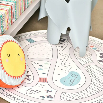 Tapetes playmat de borracha: feitos com poliéster e PVC, são antiderrapantes, fáceis de limpar e podem servir tanto como elemento decorativo quanto como tapete de atividades, dependendo do tema e da estampa. Ótimo para famílias com pets e crianças alérgicas.